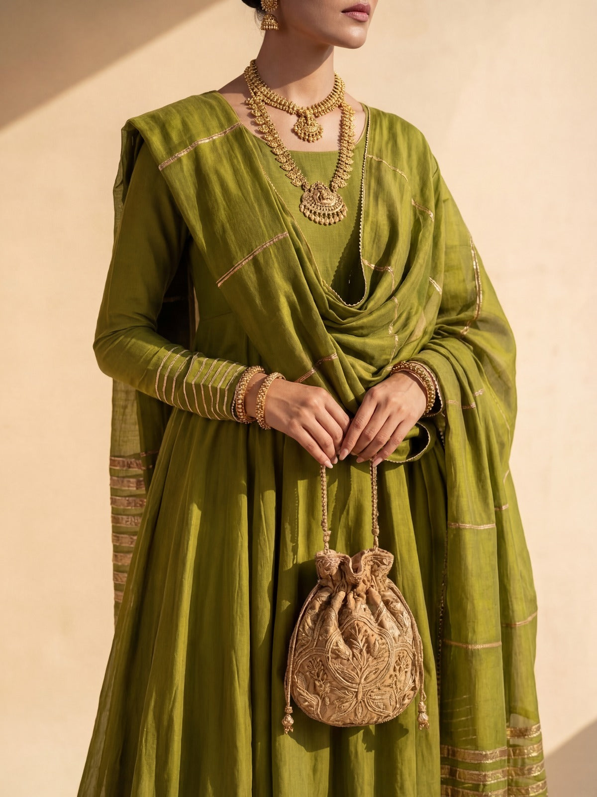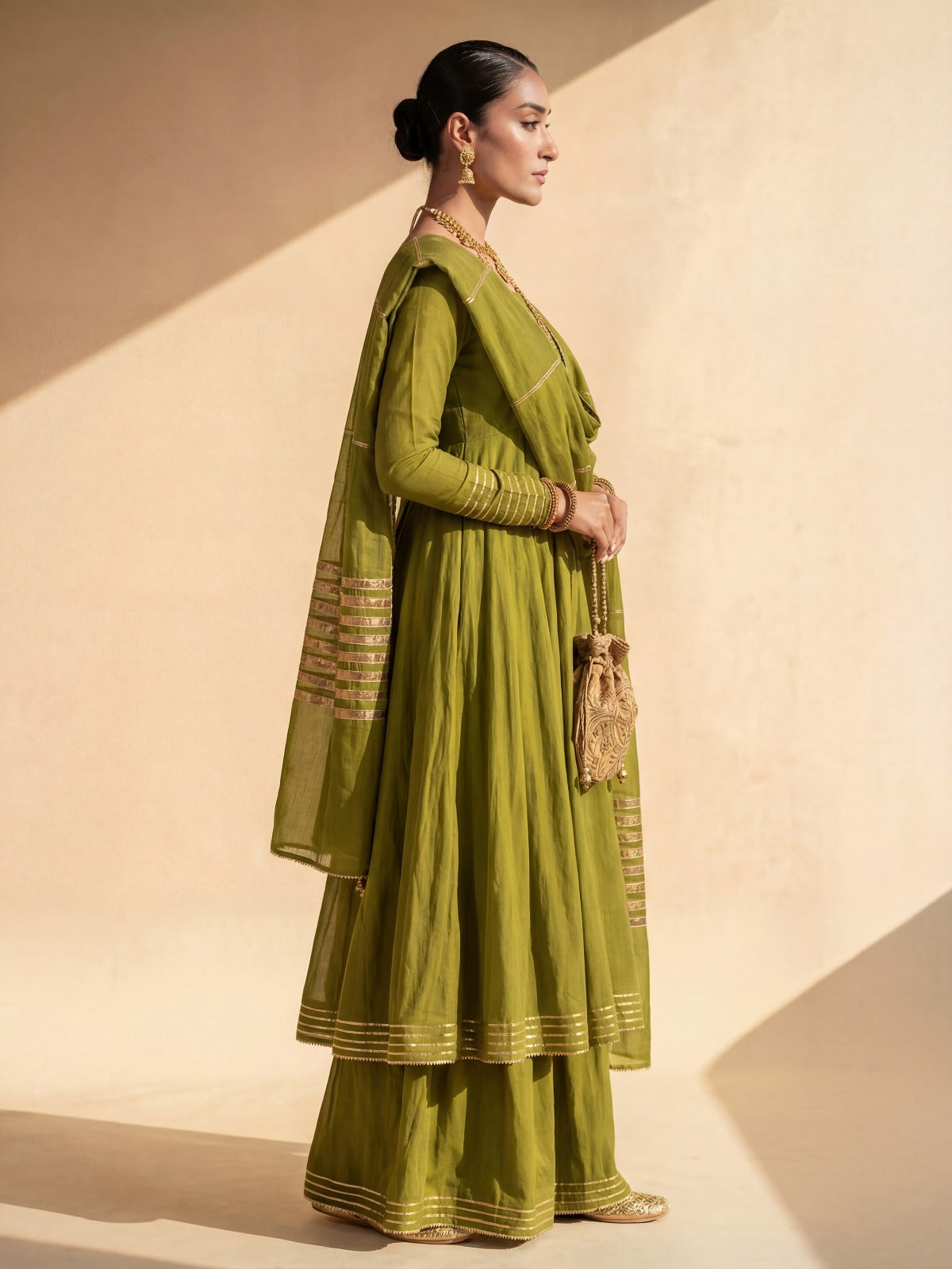 Fabric: Premium Cotton Silk (Anarkali, Pants, Zari Net (Dupatta)
